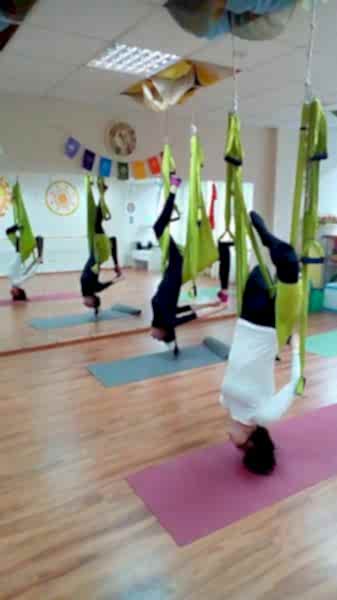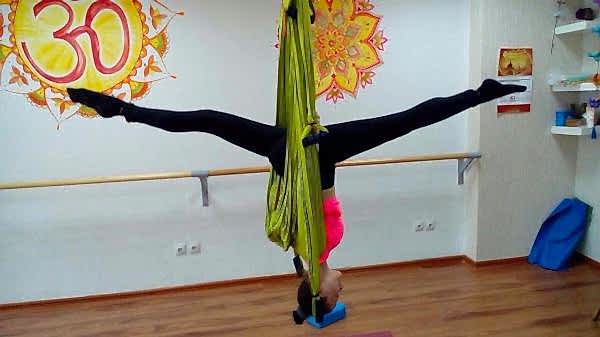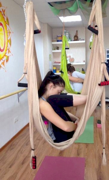 Гамак для йогипозволяет выполнять разнообразные позы, используя гамак в качестве Pin-Up опоры.